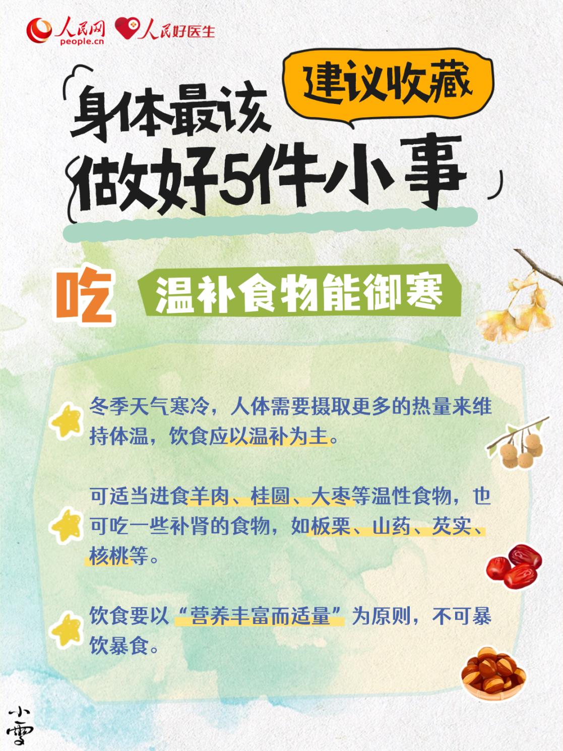 小雪节气的到来意味着天气越来越寒冷,阳气潜藏,阴气旺盛。人体的阴阳消长代谢处于相对缓慢的水平,人体气血亦随“冬藏”之气而潜藏。此时身体哪些部位需要注意防寒保暖?又该如何做到固护阳气,未病先防?