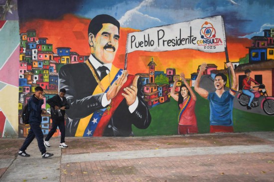 9月22日,在委内瑞拉首都加拉加斯,行人从街头支持马杜罗总统的宣传标语前走过。新华社发(马科斯·萨尔加多摄)