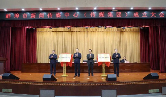 为深入贯彻落实党中央、省委关于推进市级媒体加快深度融合发展的有关要求,进一步提高新闻舆论的传播力、引导力、影响力、公信力,蚌埠市整合蚌埠日报社、蚌埠广播电视台和市文化旅游投资集团所属部分企业,组建蚌埠市新闻传媒中心、蚌埠市传媒集团,加快主流媒体全方位、深层次、系统性变革。会上,马军等市领导共同为市新闻传媒中心(传媒集团)揭牌。
