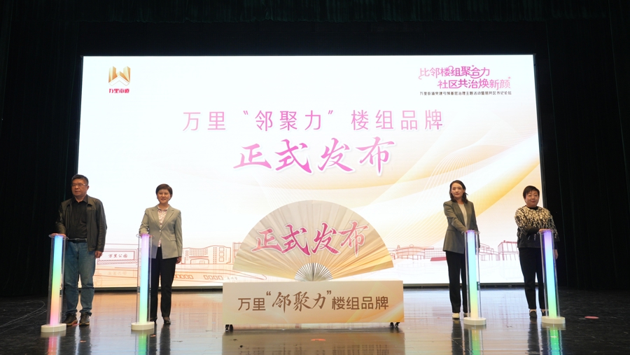 现场,普陀区、万里街道相关负责人与居民区党总支书记代表、楼组长代表共同发布了万里“邻聚力”楼组建设品牌。