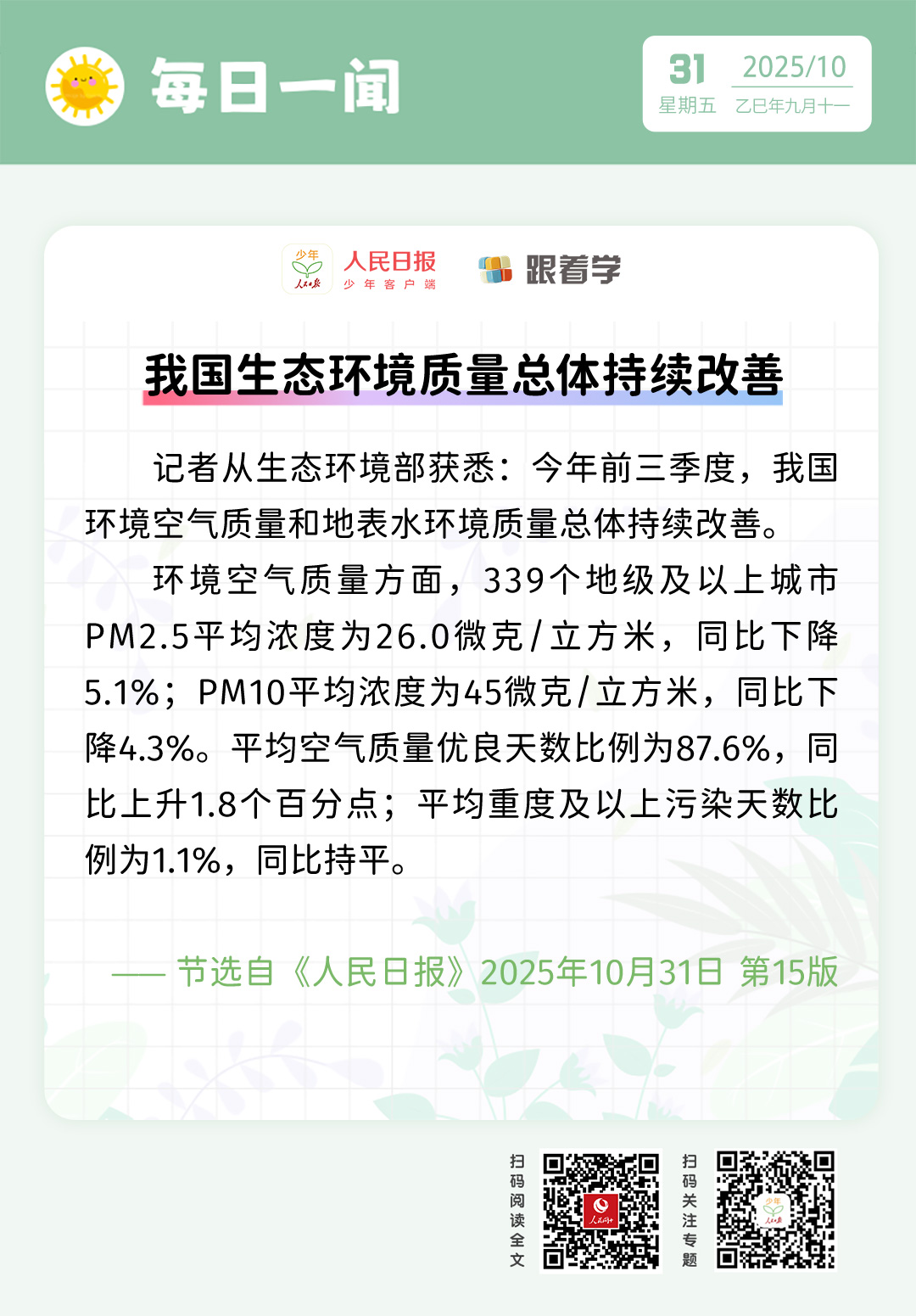 每日一闻 | 我国生态环境质量总体持续改善&nbs
