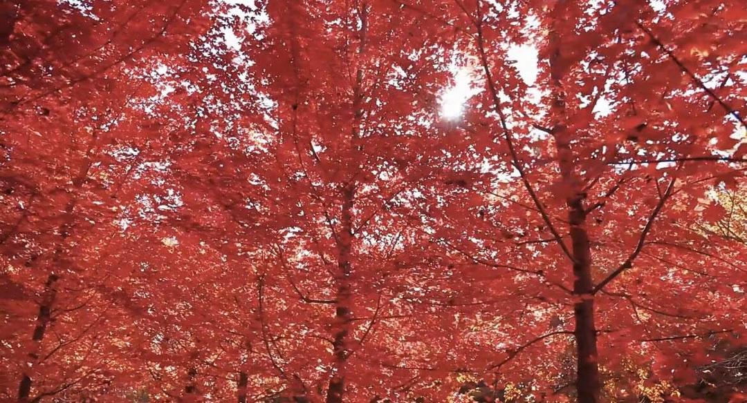 枣庄抱犊崮景区奏响红绿交响,深秋的抱犊崮国家森林公园金灿如火、酡红如霞,秋叶将时令色彩尽情绽放,红叶团簇于绿树之间,红绿交相辉映,山风拂过叶动影摇,景色分外迷人,尽显山林秋韵。