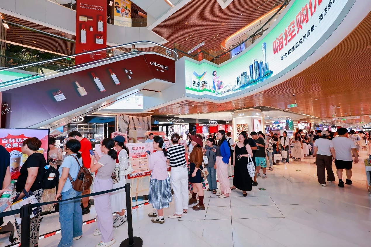 消费者在海控免税城参与促销活动。胥圣兰摄
