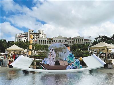 尤为引人注目的是,生活节现场设置的投个“苏”壶、福山“丸”咖、渡海“谜”月等主题化互动游戏深受游客喜爱,同时,结合东坡先生在澄迈留下的五首诗作,设计转诗墙打卡装置,以此丰富海南东坡文化的体验场景,游客完成打卡后即可集章打兑换文创冰淇淋、咖啡杯、衣服等产品。