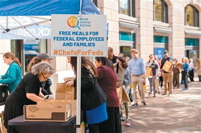 近日,在美国首都华盛顿,联邦雇员排队领取免费食物。因联邦政府“停摆”,大批联邦雇员不得不停薪休假或无薪上班。 |